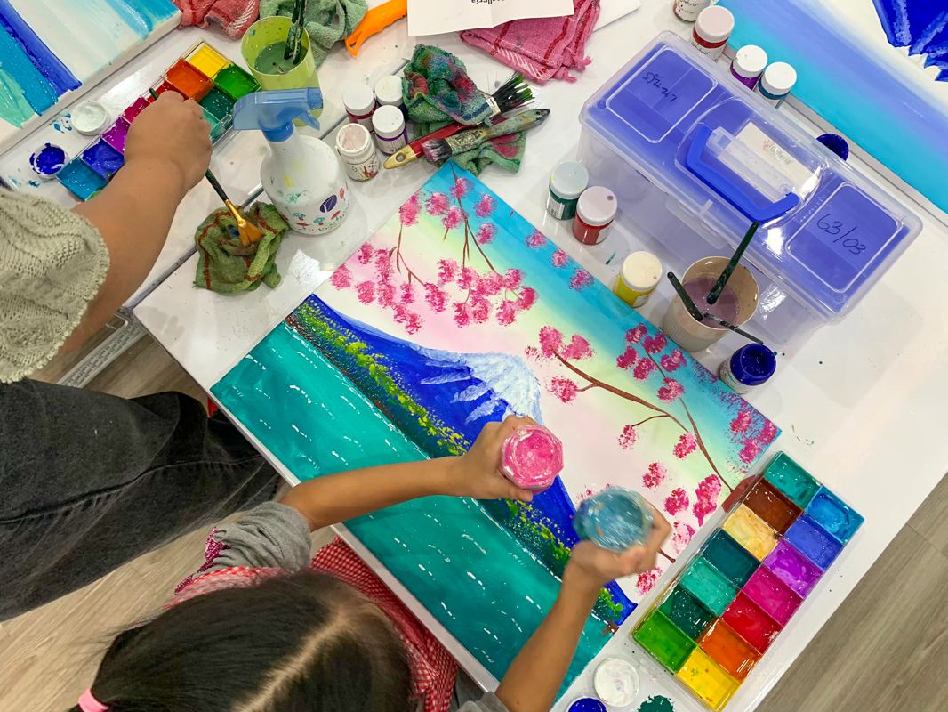 สนุกสนานไปกับการใช้พู่กันเล่นสี ผู้เรียนส่วนใหญ่ชื่นชอบกับกิจกรรมที่ให้ความรู้สึกแปลกใหม่ โดยเฉพาะการระบายสีที่ไม่ใช่แค่ทำลงบนกระดาษ A4 ปูพื้นฐานผู้เรียนได้ตั้งแต่อายุยังน้อย เพื่อต่อยอดให้กลายเป็นจิตรกรมืออาชีพ